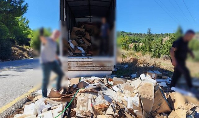 Muğla'nın Bodrum ilçesinde yol kenarına kamyon dolusu atık döken şahıslar, zabıta ekiplerince tespit edildi. Çevreyi kirletmekten ceza yiyen şahıslar, döktüklerini geri topladı.