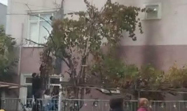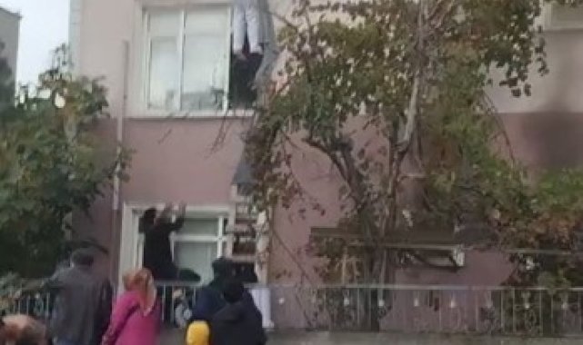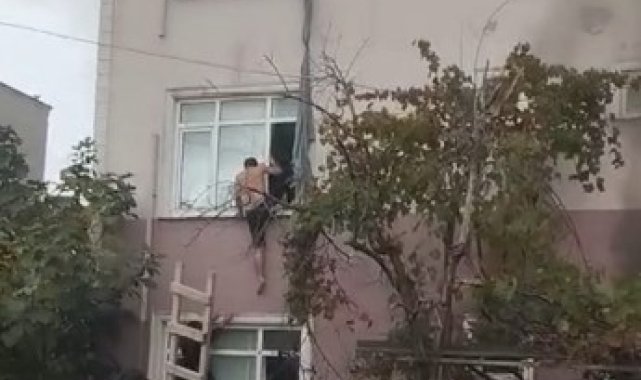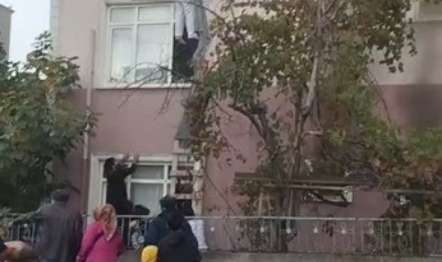 Kocaeli'nin Darıca ilçesinde alacağını tahsil edemediğini iddia eden şüpheli, önce kendisine müdahale etmeye çalışan arkadaşlarına bıçak çekti ardından 30 işçinin kaldığı binanın giriş katındaki daireyi ateşe verdi. 4 işçinin dumandan etkilendiği yangında, binada mahsur kalan işçilerin birbirine bağladıkları çarşaflarla pencerelerden aşağı inerek kurtuldukları anlar kameraya yansıdı.
