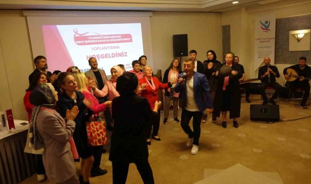 Özel İmperial Hastanesi ve Umut ve Yaşam Derneği iş birliğiyle düzenlenen "Kanserle Mücadelede Umut Işığında Daha da Güçleniyoruz" temalı toplantıda, meme kanserinde erken tanının önemi vurgulanırken, toplantı sonrası aralarında meme kanseri olan hastalar canlı müzik eşliğinde coşması renkli görüntüler oluşturdu.