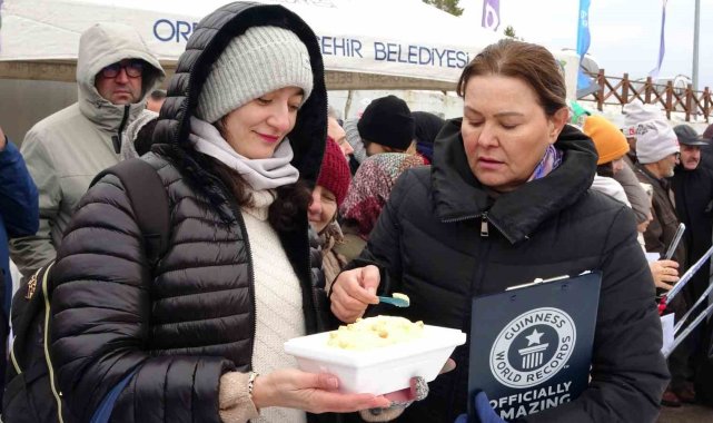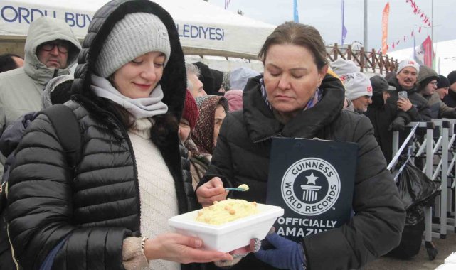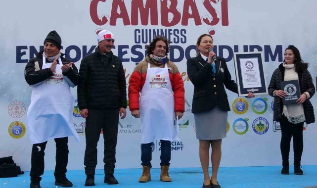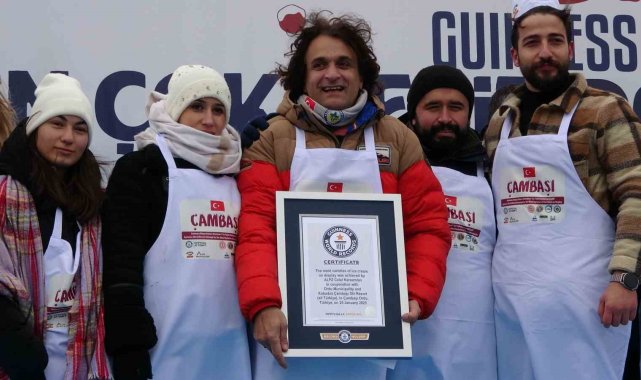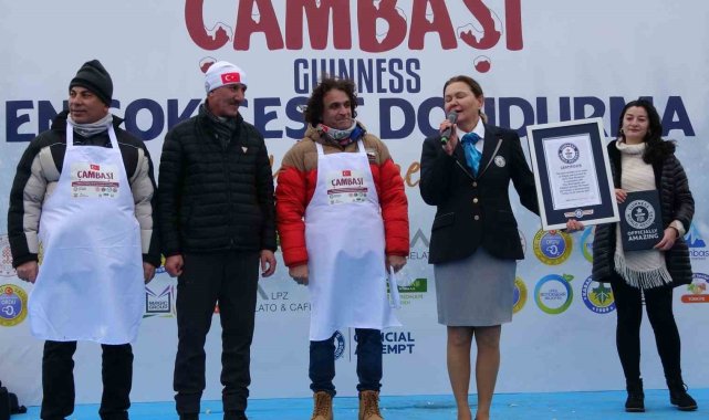 Ordulu dondurmacı Celal Karaarslan, hazırladığı bin 301 çeşit dondurma ile Guinness Rekorlar Kitabı'na girdi.Kabadüz ilçesinde bulunan Çambaşı Yaylası'nda, 'dünyanın en fazla çeşidi olan dondurması' rekor denemesi gerçekleştirildi. Guinness Rekorlar Kitabı'na girebilmek için Celal Karaarslan ve ekibi, 18 gün boyunca hazırladıkları dondurmaları kar üzerine kurulu 125 metrelik masada sergiledi.Hamsi ve balık çeşitli dondurmalar dikkat çektiYüzlerce farklı çeşit meyvenin yanı sıra yöresel ürünler, hamsi ve diğer balık çeşitlerinin de yer aldığı dondurmalar, Guinness Word Records Türkiye Hakemi ve Temsilcisi Şeyda Subaşı Gemici ve beraberindekiler, bin 301 çeşit dondurmada gerekli denetim ve tadımları yaptı.Dünya rekoru 2 bin rakımlı yaylada kırıldıArdından alana kurulan sahnede sonucu açıklayan Guinness Word Records Türkiye Hakemi ve Temsilcisi Şeyda Subaşı Gemici, rekorun sahibi olabilmek için Guinness Word Records'un uluslararası kurallarına uymanın şartlarını anlatarak, mevcut rekorun 1001 çeşitle Abu Dabi'de olduğunu, yeni rekorun ise Ordu'da olduğunu belirterek, "Büyük bir sevinçle yeni bir Guinness World Records'u ilan ediyorum. Celal Karaarslan Ordu Büyükşehir Belediyesi Kabadüz Çambaşı Kayak Merkezi bu rekoru Türkiye'ye, Ordu'ya bin 301 dondurma çeşidiyle getirmişlerdir. Tebrik ediyorum" dedi."Rekoru kıracağımı bekliyordum"Gemici'nin elinden rekor belgesini aldıktan sonra açıklamalarda bulunan Celal Karaarslan, "Şu anda duygularımı anlatamıyorum ama çok mutluyum. Doğduğumuz memlekette bu rekoru kırmak beni çok mutlu ediyor, bin 301 dondurma yaptık, hepsi de jüri tarafından kabul edildi. Bin 301 dondurma ile rekoru kırmak beni çok daha fazla mutlu etti. Tüm dondurmalarımız hem kıvamı hem duruşu itibarıyla kabul gördü. Rekoru kıracağımı bekliyordum çünkü kendimden emindim. Bu dondurma konusunda kendimden eminim. Biz 11 kişilik ekip, son 18 günde gerçekten bir kampa girdik, tüm dükkanlarımızı kapattık. Sadece bunun için hem gece hem de gündüz çalıştık" diye konuştu.Kabadüz Belediye Başkanı Yener Kaya ise hemşehrilerinin bin 301 çeşit dondurma ile rekor kırdığını, çok mutlu ve heyecanlı olduklarını kaydetti.Rekor denemesinin yapılmasının ardından dondurmalar alanda bulunan vatandaşlara dağıtıldı.