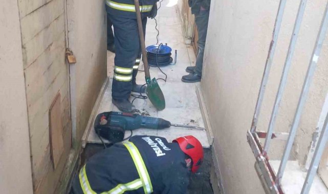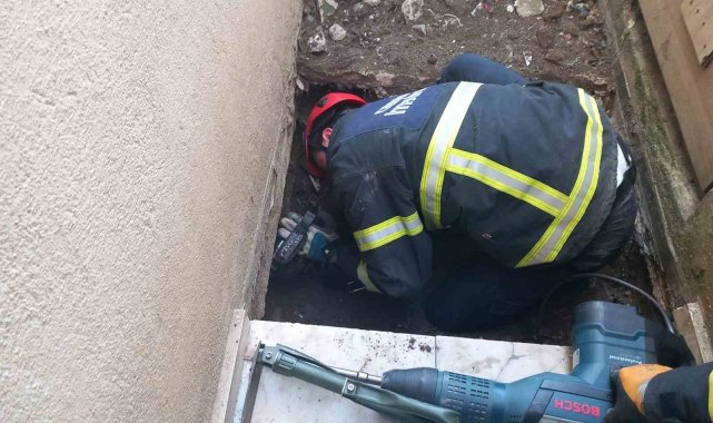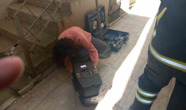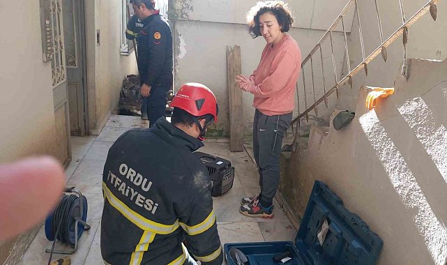 Ordu'da evcil kedi, sokak köpeklerinden kaçarken sıkıştığı yerden kurtarıldı