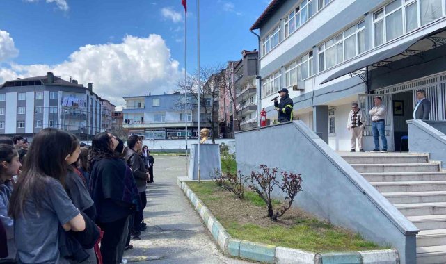 Ordu'nun Ünye ilçesinde eğitim gören 480 öğrenci, Büyükşehir Belediyesi İtfaiye Daire Başkanlığı ekiplerinden uygulamalı yangın söndürme ve ilk yardım eğitimi alarak acil durumlara karşı bilinçlendirildi.
