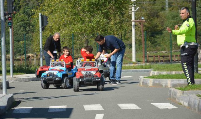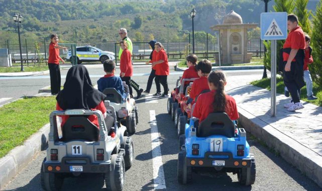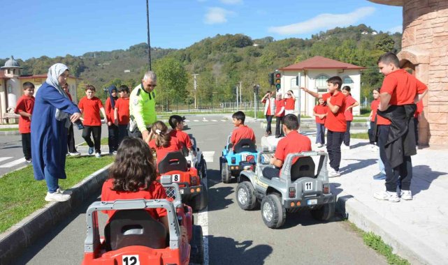 Ordu'nun Ünye ilçesinde, geleceğin sürücüleri ve yayaları olan minik öğrenciler, trafik eğitim pistinde aldıkları uygulamalı eğitimle kuralları eğlenerek öğrendi.