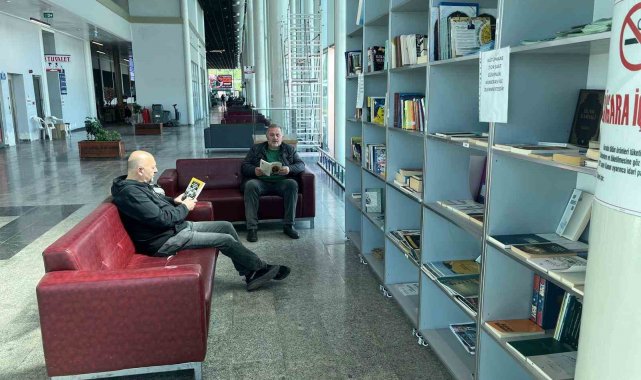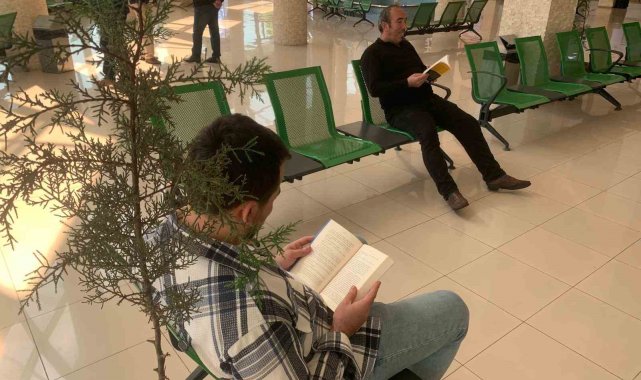 Ordu'da otobüs bekleyenler, kitap okuyarak vakit geçiriyor