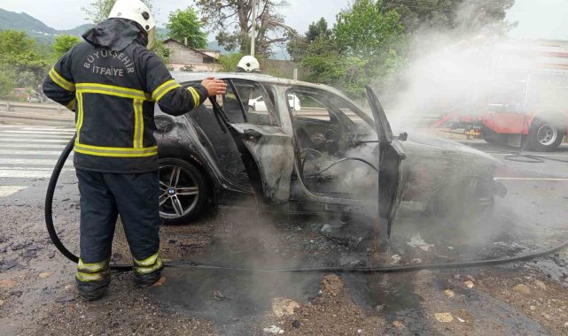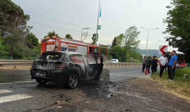 Ordu'nun Ünye ilçesinde seyir halindeki otomobilde çıkan yangın itfaiye ekipleri tarafından söndürülürken, araç ise kullanılamaz hale geldi.