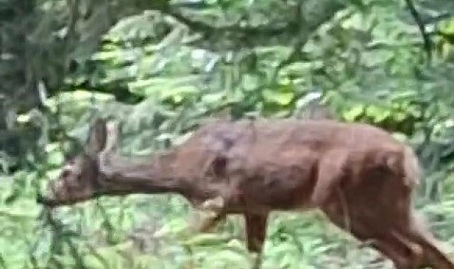 Orman işçisi, kendisine yaklaşan karacayı cep telefonu kamerasıyla görüntüledi