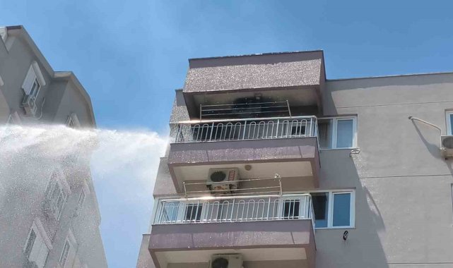 Orman yangınında alev alan 6. kattaki evin balkonuna TOMA müdahalesi