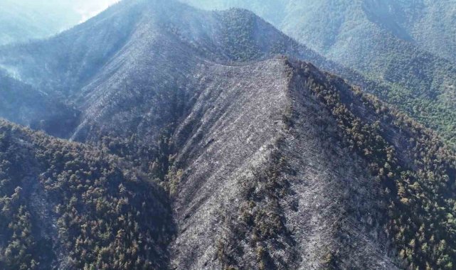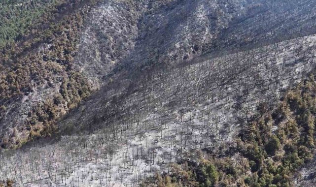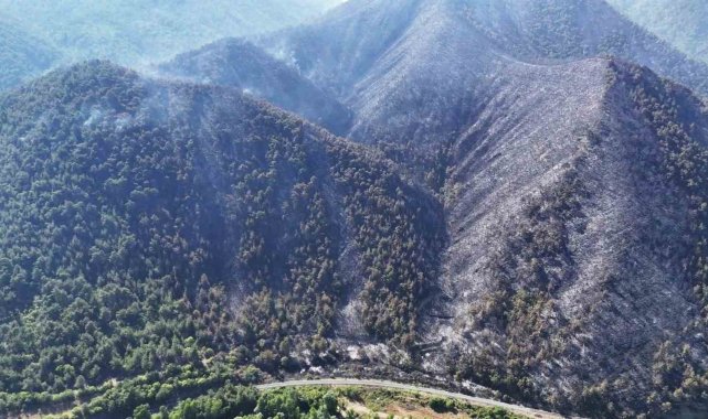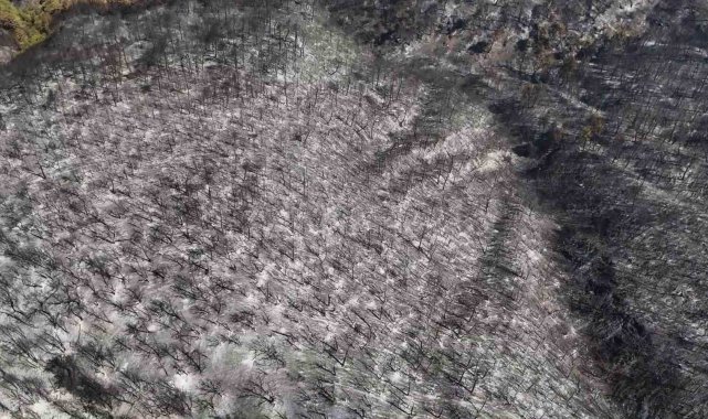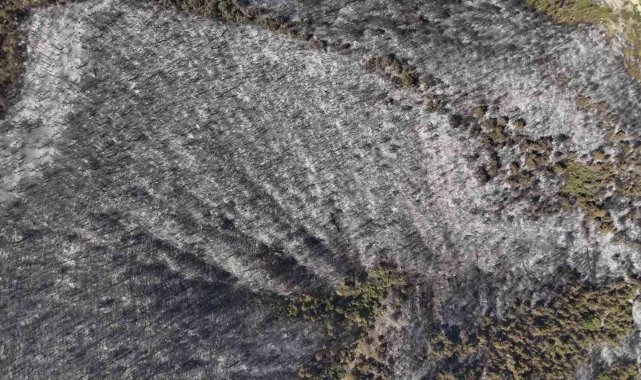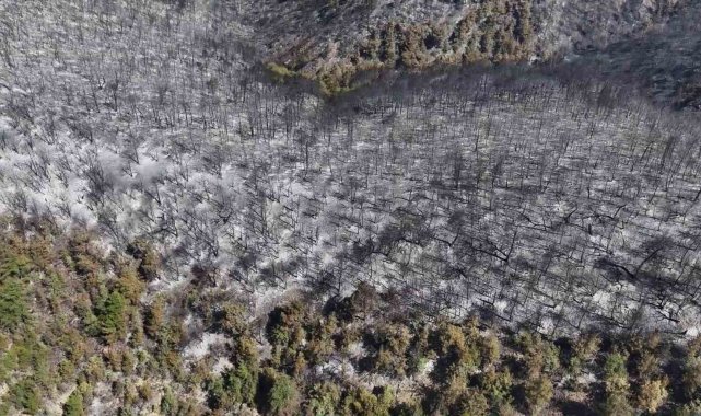 Orman yangınında zarar gören alanlar havadan görüntülendi