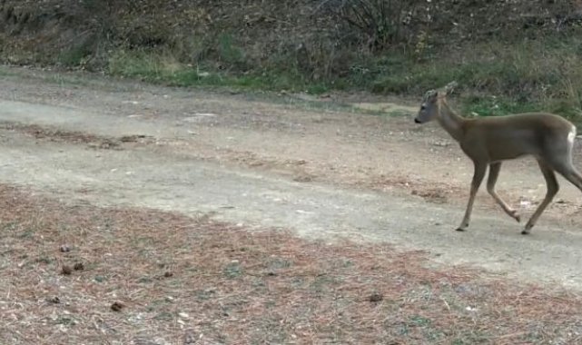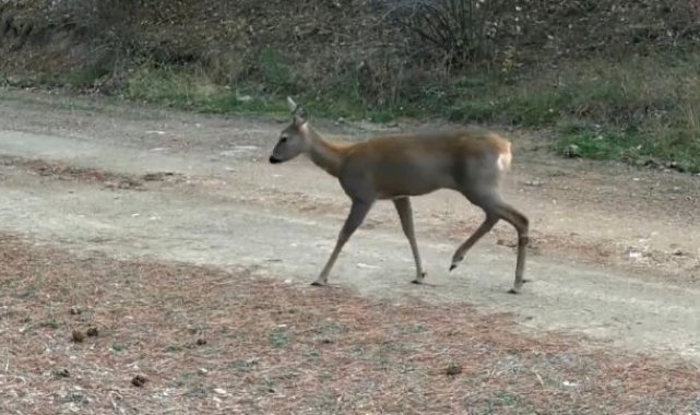 Çankırı'da doğaya yerleştirilen fotokapanlarla ormanda yiyecek arayan karacalar görüntülendi.