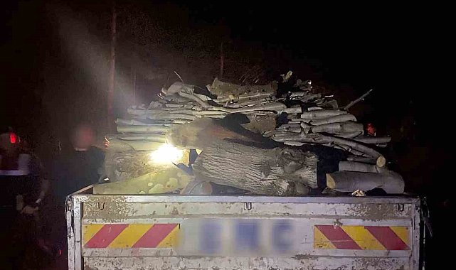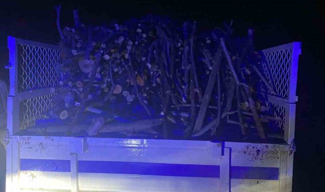 Aydın'ın Kuyucak ilçesinde ormanlık alandaki ağaçları kesen 3 şüpheli, ağaçları taşıdıkları 2 araç ile yakalandı.