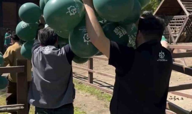 Kocaeli'deki Ormanya Doğal Yaşam Parkı'nda dünyaya gelen ve sağlık durumu iyi olan yavru deve için görevliler tarafından yeşil balonlarla renkli bir kutlama yapıldı. Yavru deve ziyaretçilerin ilgi odağı olurken, yetkililer sevimli hayvana isim bulmak için vatandaşlardan öneri bekliyor.Avrupa'nın en büyük doğal yaşam parklarından biri olan Ormanya'daki deve ailesine yeni bir üye katıldı. Veteriner hekimler gözetiminde sorunsuz gerçekleşen doğumun ardından anne ve yavrunun sağlık durumunun iyi olduğu belirlendi. Park görevlileri, sağlıklı şekilde dünyaya gözlerini açan minik misafir için yeşil balonlarla sembolik kutlama organizasyonu düzenledi. Renkli görüntülere sahne olan anlar, parkta sıcak ve samimi bir atmosfer oluşturdu. Doğumun ardından anne ve yavrunun gelişim sürecinin veteriner hekimler tarafından yakından takip edildiği bildirildi.Kısa sürede ziyaretçilerin ilgi odağı olan sevimli yavrunun ismi, Kocaeli Büyükşehir Belediyesinin resmi Instagram hesabı üzerinden vatandaşların önerileriyle belirlenecek.