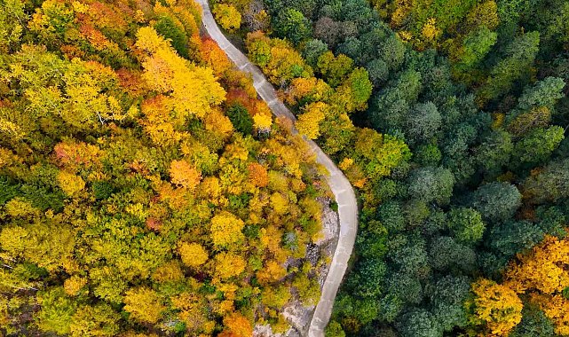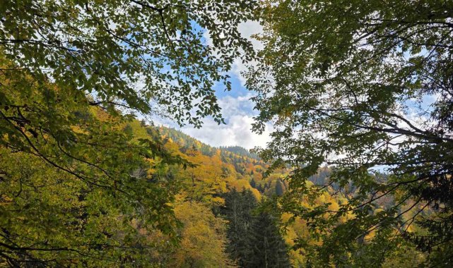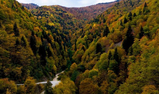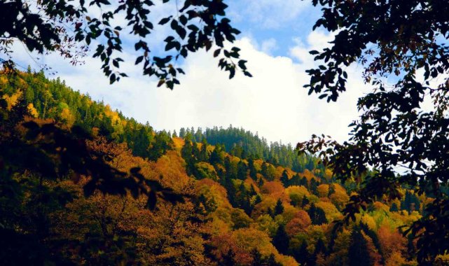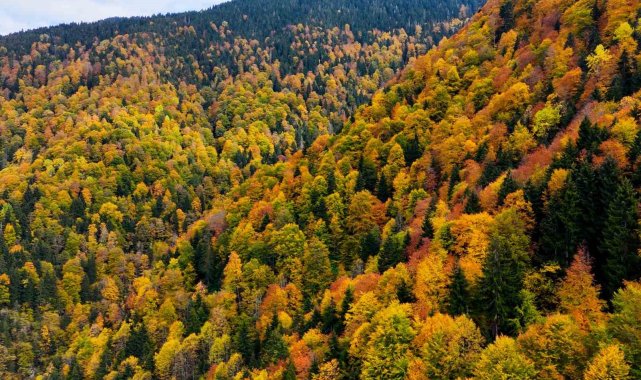 Gümüşhane'nin Kürtün ilçesi sınırlarında yer alan ve doğal güzelliğiyle öne çıkan Örümcek Ormanları Tabiatı Koruma Alanı, sonbaharın gelişiyle birlikte ziyaretçilerine unutulmaz bir görsel şölen sunuyor.