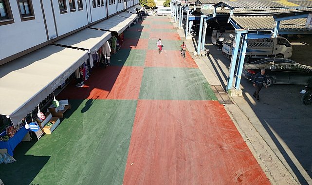 Osmaneli Belediyesi tarafından kapalı pazaryeri ve belediye binasının önünde yer alan alana kaydırmaz boya ile yol çalışması yapıldı.