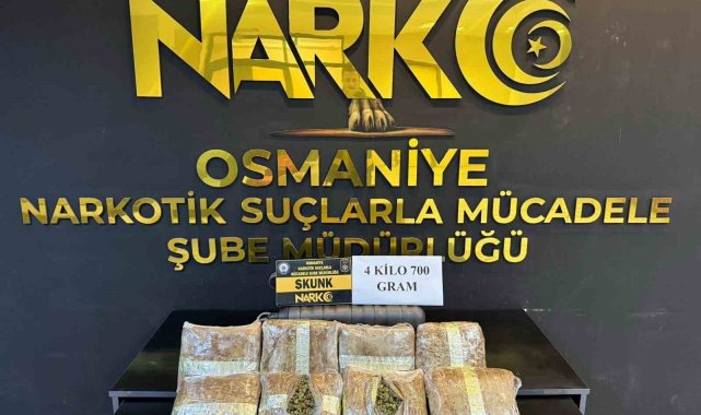 Osmaniye'de polis ekiplerince durdurulan 3 farklı araçta yapılan aramalarda, 4 kilo 700 gram skunk ile 390,70 gram metamfetamin ele geçirildi. Olayla ilgili gözaltına alınan 5 şüpheli çıkarıldıkları mahkemece tutuklandı.