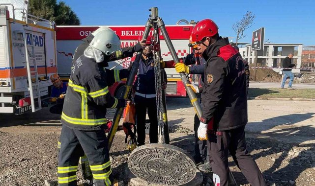 Osmaniye'de altyapı çalışmalarının yürütüldüğü alanda göçük ve kanalizasyon bacasında baygınlık tatbikatı gerçekleştirildi.Osmaniye Belediyesi İtfaiye Müdürlüğü, AFAD, UMKE ve sağlık ekiplerinin katılımıyla gerçeğini aratmayacak şekilde gerçekleştirilen tatbikatta, 2 işçi başarılı bir şekilde kurtarıldı. Osmaniye'de yapımı devam etmekte olan merkez kanalizasyon ve içme suyu yapım işinde muhtemel acil durumlara hazırlık kapsamında kanalizasyon bacasında baygınlık ve boru hattı içerisinde göçük tatbikatı düzenlendi. Tatbikat, Osmaniye Belediyesi İtfaiye Müdürlüğü, UMKE, AFAD ve OSKİ Müdürlüğü koordinasyonunda gerçekleştirildi.Senaryo gereği, Yusuf Çenet Bulvarındaki altyapı çalışmaları sırasında, kapalı alanda bir işçi sıva işleri yaparken bilincinin kaybolması üzerine gözlemci bu durumu yetkililere bildiriyor. İhbar üzerine bölgeye, itfaiye, AFAD ve UMKE ekipleri sevk ediliyor. Çalışma alanına gelen AFAD görevlileri ilk olarak baca içerisinde gaz ölçümü yaptı. Ardından itfaiye ekipleri kurulan tipoda bağlı halat yardımı ile girdiği kanalizasyon bacası içerisindeki baygınlık geçiren personeli dışarıya çıkarttı. Olayın devamında 50 metre ilerideki kazı çalışması alanında bir personel göçük altında kaldı. Göçükte kalan personel, yine kurtarma ekiplerince gerekli güvenlik tedbirleri alındıktan sonra sedye ile dışarıya çıkartılıp sağlık ekiplerine teslim edildi. Tatbikatı, Belediye Başkan Yardımcısı Melih Loş ve altyapı çalışmasını yürüten firma yetkilileri yakından takip etti.İş Güvenliği Uzmanı Şadiyenur Şahinkaya, tatbikatın amacının, çalışanların göçük durumunda, korunma ve savunma tedbirleriyle göçük halinde yapılması gereken kurtarma ve tahliye usullerini pekiştirmek ve çalışanlara göçük olması durumunda ilk yardım uygulaması usullerini öğretmek ve sedye ile taşıma yöntemlerini göstermek olduğu belirtildi.
