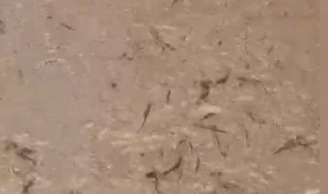 Osmaniye'nin Bahçe ilçesi Taşoluk mevkiinde baraj kapaklarının açılması sonucu su seviyesinin aniden düşmesiyle yüzlerce balık telef oldu. O anlar bir vatandaşın cep telefonu kamerasına yansıdı.