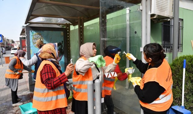 Osmaniye'de otobüs duraklarında genel temizlik çalışması