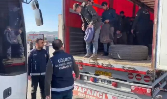 Osmaniye'de polis ekiplerince şüphe üzerine durdurulan tırın dorsesinde 39 düzensiz göçmen yakalandı. Olayla ilgili 2 şahıs "göçmen kaçakçılığı" suçundan tutuklandı.İl Emniyet Müdürlüğü Göçmen Kaçakçılığıyla Mücadele ve Hudut Kapıları Şube Müdürlüğü ekiplerince göçmen kaçakçılığının önlenmesi ve düzensiz göçmenlerin yakalanmasına yönelik çalışma yapıldı. Bu çerçevede, uygulama noktasında, şüphe üzerine durdurulan tırın dorsesinde yaptığı incelemede 37 Afganistan 2 Pakistan uyruklu toplam 39 düzensiz göçmen yakalandı.Göçmenleri batı illerine götüren tırda bulunan sürücüler Enver A. ve Yakup A., "göçmen kaçakçılığı" suçundan çıkarıldığı adli makamlarca tutuklandı.Yakalanan 37 Afganistan 2 Pakistan uyruklu toplam 39 kaçak göçmen, sınır dışı işlemleri için İl Göç İdaresi Müdürlüğüne teslim edildikten sonra sınırdışı edildi.