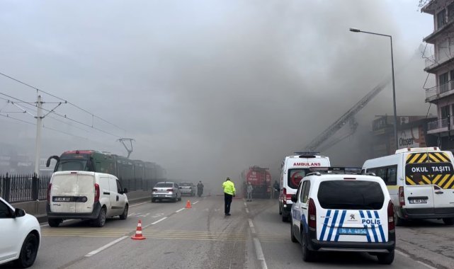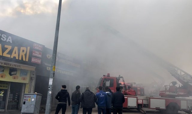 Bursa'da oto aksesuar işletmesinde çıkan yangın başka bitişiğindeki iş yerine sıçradı. Ekiplerin alevleri söndürme çabası sürerken, dumanların kapladığı Bursa-İstanbul yolunda aksama yaşanmaması için trafik ekipleri, çevrede güvenlik önlemi alıp yolu tek şeritli geçişe açtı.