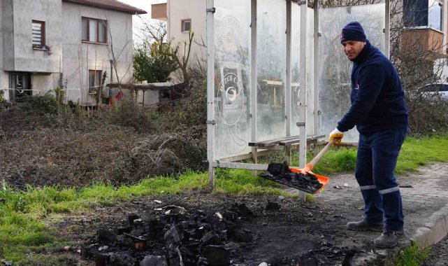 Düzce'nin Aziziye ve Ağa Mahallelerindeki otobüs duraklarına zarar verildi. Temizlik İşleri Müdürlüğü ekipleri, ateş yakılan ve camları kırılan durakları temizleyerek kirliliği ortadan kaldırdı.