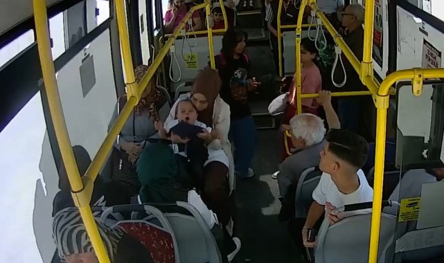 Karaman'da halk otobüsünde boğazına şeker kaçarak boğulma tehlikesi geçiren bebek, şoförün Heimlich manevrası sayesinde kurtarıldı. O anlar güvenlik kamerasına yansıdı.