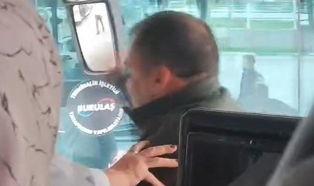 Bursa'da otobüs şoförüyle tartışan yolcu yakını, yumruklu kavgaya tutuştu. O anlar cep telefonu kamerasına yansıdı.Olay, Bursa'nın Gemlik ilçesinde şehir içi yolcu taşımacılığı yapan bir otobüste meydana geldi. Edinilen bilgiye göre, kimliği öğrenilemeyen bayan yolcunun babası ile otobüs şoförü arasında bağırma yüzünden tartışma çıktı."Sen kızıma nasıl bağırırsın" diyen baba şoföre yumruklarla saldırdı. Otobüs içinde başlayan arbede sırasında yolcular büyük panik yaşadı. Kavgayı otobüste bulunan diğer vatandaşlar araya girerek güçlükle ayırdı.Yaşanan olay, bir yolcunun cep telefonu kamerasına anbean yansıdı. Olayla ilgili soruşturma başlatıldığı öğrenildi.
