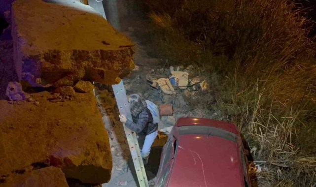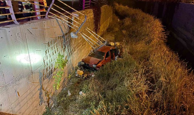 Otomobil 5 metrelik kanala uçtu, sürücünün burnu bile kanamadı
