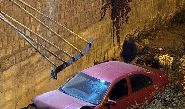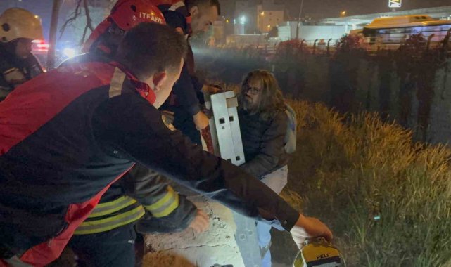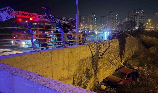 Kayseri'nin Kocasinan ilçesinde 5 metrelik kanala uçan otomobilin sürücüsü, kanaldan merdiveni tırmanarak çıktı.