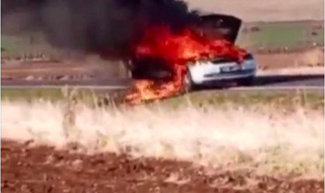 Şanlıurfa'nın Siverek ilçesinde seyir halindeki bir otomobil alev alev yandı. İtfaiyenin müdahale ettiği yangında otomobil kullanılamaz hale geldi.