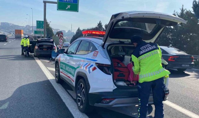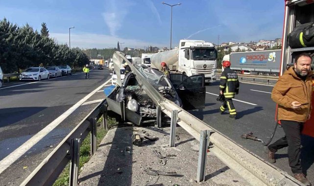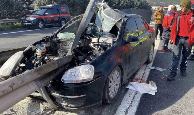 TEM Otoyolu İzmit geçişinde otomobil bariyerlere girdi. Kazada 1'i ağır 4 kişi yaralandı.