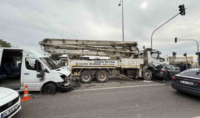 Otomobil, beton mikseri ve minibüs çarpıştı: 11 yaralı