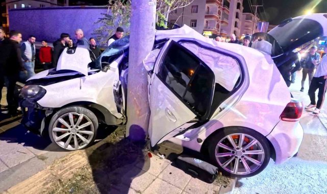 Aksaray'da sürücüsünün direksiyon hakimiyetini kaybettiği otomobil kontrolden çıkarak kaldırım üzerindeki elektrik direğine saplandı. Kazada 1'i kadın 2 kişi ağır yaralandı.