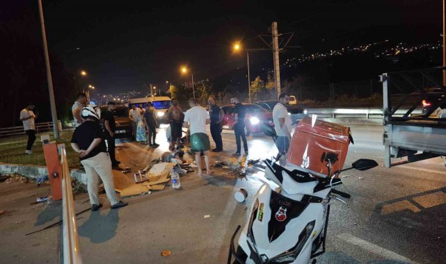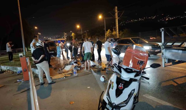 Bursa'da kontrolden çıkan otomobil, elektrikli motosiklete çarptı. Kazada 3 kişi yaralandı.