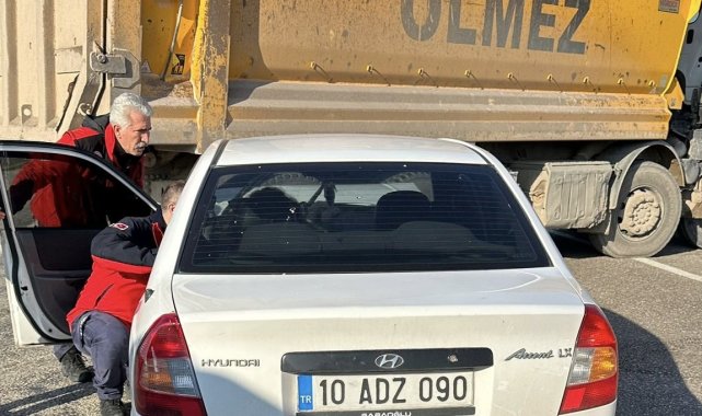 Balıkesir'in Gönen ile Manyas ilçesi arasında kamyonun altına giren otomobildeki sürücüsü, yaralı olarak hastaneye kaldırıldı.