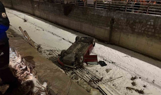 Otomobil kanala uçtu: 1 yaralı