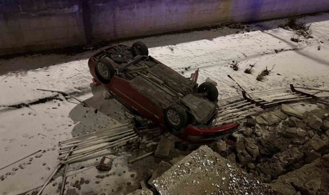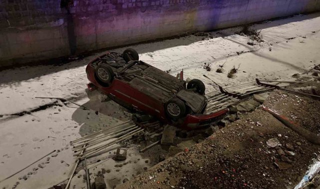 Kayseri'nin Kocasinan ilçesinde sürücüsünün direksiyon hakimiyetini kaybettiği otomobil 5 metrelik kanala uçarken, sürücü kazayı hafif yaralı olarak atlattı.
