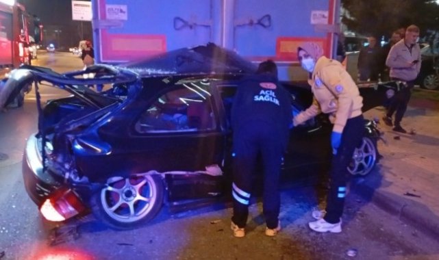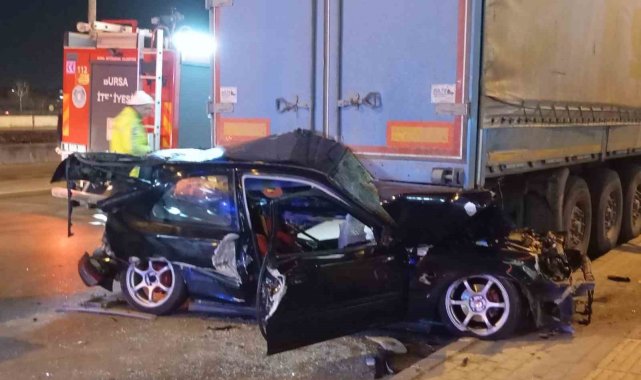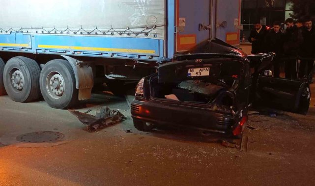 Bursa'nın Osmangazi ilçesinde hafif ticari araçla çarpışan otomobil, park halindeki tırın altına girdi. Kazada otomobil sürücüsü ağır yaralandı.