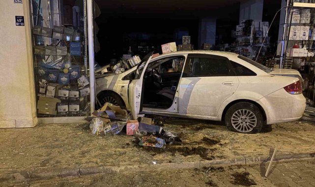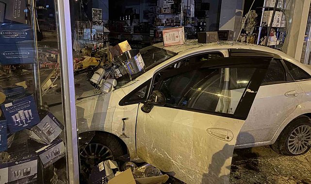 Otomobil züccaciye dükkana daldı: 1 yaralı