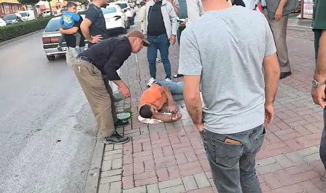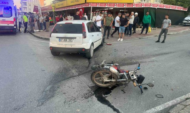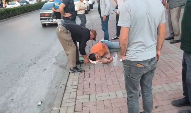 Otomobile çarpan motosiklet sürücüsü havada takla atıp yere düştü