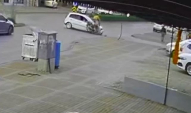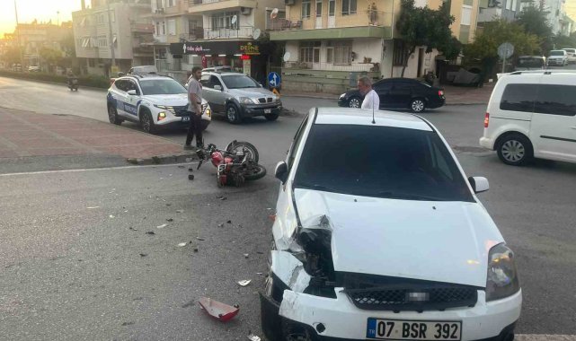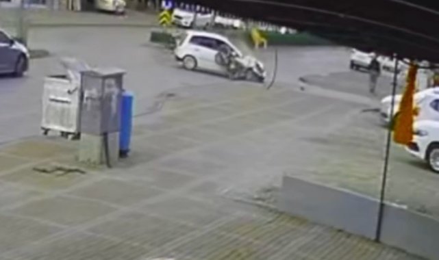 Antalya'nın Manavgat ilçesinde motosiklet ile otomobilin kavşakta çarpışması sonucu meydana gelen kazada yabancı uyruklu motosiklet sürücüsü yaralanırken, motosikletin plakasız ve sürücünün ise ehliyetsiz olduğu, kaskının da bulunmadığı belirlendi. Sürücünün çarpışmanın etkisiyle takla atıp otomobilin diğer tarafına düştüğü anlar güvenlik kamerasına yansıdı.