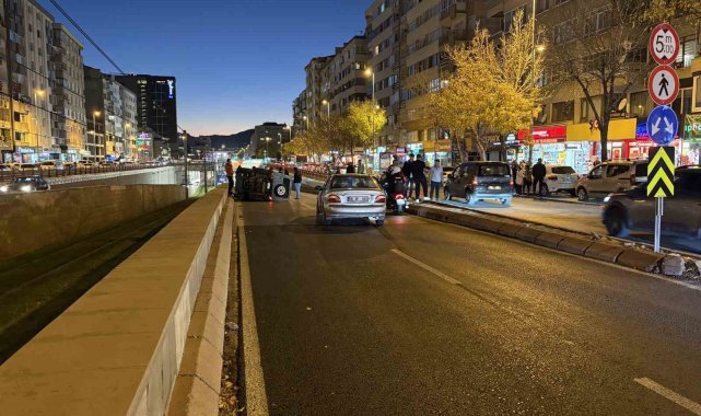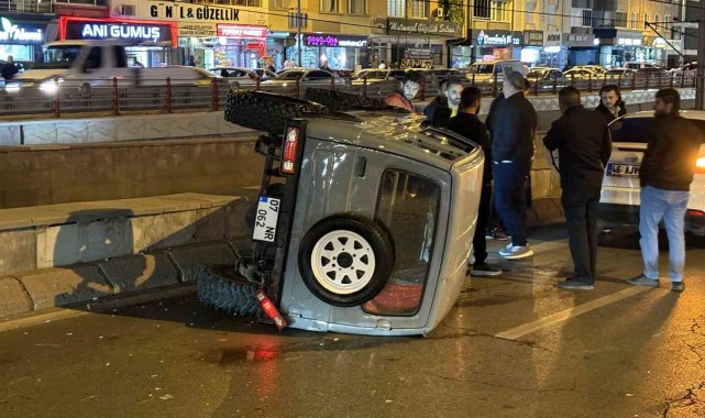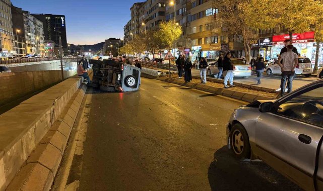 Kayseri'nin Kocasinan ilçesinde otomobilin arkadan çarptığı cip yan yatarken, yol araç trafiğe kapandı.