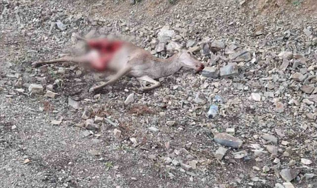 Otomobilin çarptığı geyik telef oldu: Yarısını kurtlar yedi
