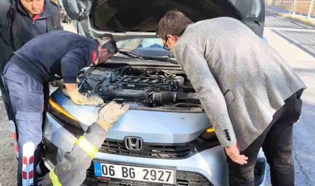 Otomobilin motor kısmına sıkışan yavru kedi itfaiye ekiplerince kurtarıldı