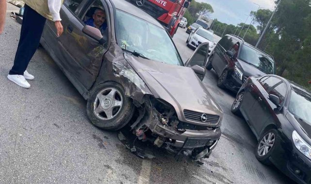 Antalya'nın Aksu ilçesinde meydana gelen kazada, kontrolünü kaybeden otomobil, ticari taksiye çarptı. 2 kişinin yaralandığı kaza anı araç kamerası tarafından anbean kaydedildi.