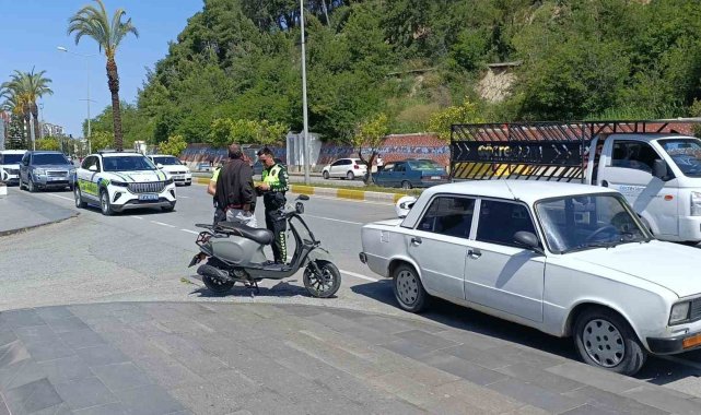 Antalya'nın Manavgat ilçesinde sağa dönüş yapan otomobil ile elektrikli bisiklet çapıştı. Güvenlik kamerasına yansıyan kazada, elektrikli bisikletin sürücüsü yola savrulup park halindeki bir otomobilin altına girdi.Kaza, Bahçelievler Mahallesi Antalya Caddesi'nde meydana geldi. Edinilen bilgiye göre, Ethem G.'nin kullandığı 07 BFR 810 plakalı elektrikli bisiklet, Orman İşletme Müdürlüğü önüne geldiğinde aynı istikamette giderken sağa dönüş yapan, plaka ve sürücüsü belirlenemeyen otomobile çarptı. Kaza sonrası elektrikli bisiklet sürücüsü yola savrulup park halinde aracın altına girdi.Güvenlik kamerasına yansıyan kazanın ardından elektrikli bisiklet sürücüsü ile konuşan otomobil sürücüsü olay yerinden ayrıldığı belirtildi. Sürücü olay yerine gelen ambulansta yapılan tedavinin ardından hastaneye gitmekten vazgeçti, trafik ekipleri ile görüştükten sonra da elektrikli bisikletine binip olay yerinden ayrıldı.