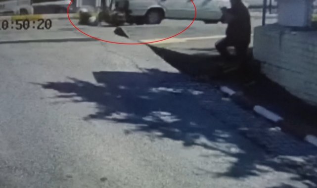 Antalya'nın Manavgat ilçesinde sağa dönüş yapan otomobil ile elektrikli bisiklet çapıştı. Güvenlik kamerasına yansıyan kazada, elektrikli bisikletin sürücüsü yola savrulup park halindeki bir otomobilin altına girdi.