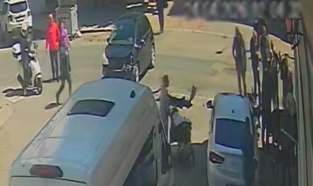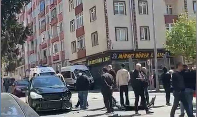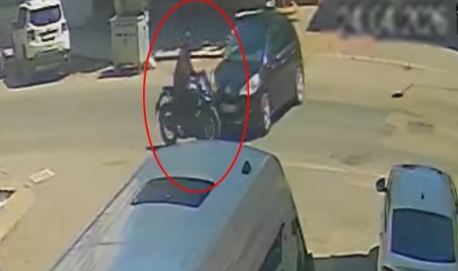 Otomobille çarpışan motosikletlinin savrularak yaralandığı kaza kamerada