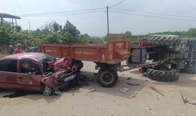 Otomobille çarpışan traktör devrildi: 2 yaralı