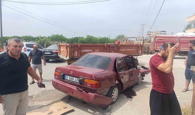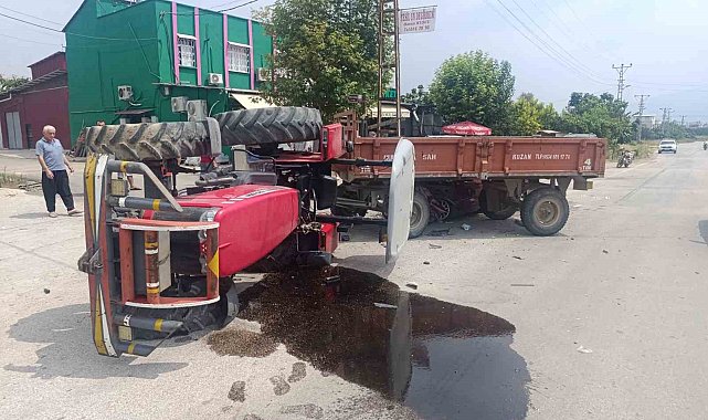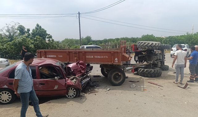 Adana'nın Kozan ilçesinde otomobille çarpışan traktör devrildi, 2 sürücü de yaralandı.