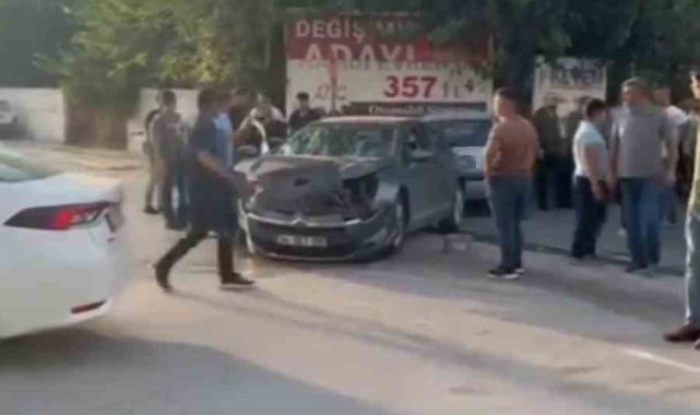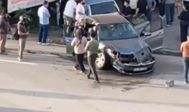 Otomobillerin kafa kafaya çarpıştığı kazada 2 kişi yaralandı, o anlar kamerada